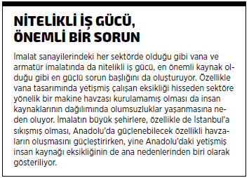 Türkiye’de, vana imalatında üretim çeşitlemesi ve yüksek katma değerli ürünlerin üretimine geçiş eğilimine karşın sanayide halen daha çok standart, orta teknolojili ve düşük katma değerli ürünlerin üretilmeye devam edildiğini de söylemeliyiz. İç pazarda daha çok fiyat rekabeti öne çıkarken, bu anlamda, yüksek katma değerli üretim çabaları da iç pazarda yeterince karşılık göremiyor. Diğer yandan, sanayi ürünlerinin ihracatında önemli bir artış olmasına karşın önemli ölçüde ithalat yapıldığı da görülüyor. Bu büyük ölçekli ithalat içerisinde yüksek teknolojili veya Türkiye’de üretilmeyen ürünlerin ithalatı kadar Uzak Doğu menşeli ve görece ucuz ve düşük standartlı ürünler de önemli bir hacim barındırıyor. İthalatta denetim ve gözetimin yetersiz kalması ile yeterli standart ve sertifikasyon olmaması ise ithalat süreçlerini kolaylaştırıcı iki önemli başlık olarak öne çıkıyor.
