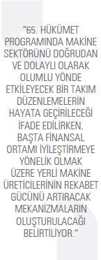 Bunların dışında; makine sektörünün de içinde bulunduğu orta-yüksek teknoloji grubuna yönelik 65. Hükümet Programında taahhütler yer almaktadır:
