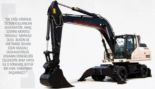 İlk yağlı hidrolik sistem kullanılan ekskavatör, araç üzerine monteli “Gradall” markası oldu. Ray Ferwerda tarafından 1941 yılında geliştirilen aracın resmi hakları 1946’da Warner & Swasey Company tarafından alındı. Bugün de üretimine devam eden Gradall ekskavatörler, kovanın dönebildiği teleskopik bom yapısı ile o dönemde büyük bir fark yaratmayı başarmıştı.