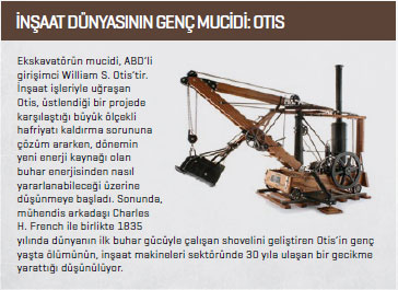 Ekskavatörlerin atası olarak kabul edilen “shovel” tipi makinelerin mucidi Amerikalı William S. Otis’tir. Bir inşaat firmasının ortağı olan Otis, üstlendiği demir yolu projelerini zamanında bitirerek ceza ödememek için hafriyat işlerini hızlandırmanın değişik yollarını arıyordu. O yıllarda gelişimi hızlanan buharlı makinelerin, kütleleri insan veya hayvan gücünden daha etkin şekilde kaldırmasını sağlayacak bir güç üretiminde kullanılabileceğini düşünen Otis, mühendis arkadaşı Charles H. French ile birlikte 1835 yılında dünyanın ilk buhar gücüyle çalışan shovelini geliştirdi.