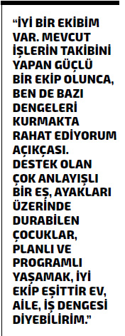 Bu üçgende hayat, hepimizin kendi sorumluluklarını yerine getirmesiyle sürüyor. Başta eşim çok destekçidir bana. Kızlarımı da kendi ayakları üzerinde durabilir şekilde yetiştirmeye gayret ediyorum. Boca Raton’da geçirdiğimiz sürede, ev işlerini tüm aile aramızda paylaşırız. Yemeğimizi de, temizliğimizi de kendimiz yaparız, yardımcımız yoktur. ABD’de olduğum dönemde, çocuklarım okula gittiği zaman işin başına geçerim. İyi bir ekibim var. Mevcut işlerin takibini yapan güçlü bir ekip olunca, ben de bazı dengeleri kurmakta rahat ediyorum açıkçası. Destek olan çok anlayışlı bir eş, ayakları üzerinde durabilen çocuklar, planlı ve programlı yaşamak, iyi ekip eşittir ev, aile, iş dengesi diyebilirim.