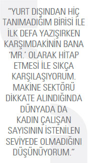 Makine imalat sektöründe kadın çalışanlar desteklenmeli ve pozitif ayrımcılığa tabi tutulmalıdır. Ülkemizin uzun vadeli stratejik hedeflerine ulaşması için kadınların çalışma hayatına katılması gerektiğine, toplum içindeki konumuna ancak bu şekilde katkı sağlanmış olunacağına inanıyorum. Makine sektörü dikkate alındığında dünyada da kadın çalışan sayısının Türkiye’deki gibi istenilen seviyede olmadığını düşünüyorum.