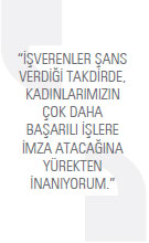 Güralp Vinç’de benim haricimde üç kadın yönetici daha bulunuyor. İzmir bölge pazarlama müdürümüz, insan kaynakları müdürümüz ve finans müdürümüz de görevlerini severek yapan başarılı yöneticiler. Kadın yöneticiler olarak firmamıza renk kattığımızı düşünüyorum.