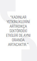 İşverenlerin ön yargılı davranmayarak kadınlara şans vermeleri gerekiyor. Kadınların iş hayatında çok da uzun bir zamana yayılmayan doğum izinlerini dezavantaj olarak değerlendirmedikleri takdirde sektördeki kadın çalışan ve yönetici sayıları da artacaktır. Bununla beraber kadınlar kendi yetkinliklerini daha da artırdıkça sektördeki etkileri de aynı oranda artacaktır diye düşünüyorum.