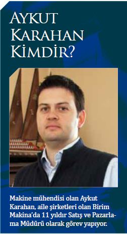 Türkiye’nin makine üretimi açısından özel bir konumda olduğunu vurgulayan Karahan; “Kaliteli, dayanıklı ve teknolojik ürünleri uygun fiyatlara pazara  sunma kabiliyetine sahibiz. Ortadoğu, Doğu Avrupa, Afrika gibi bölgelerde tanınıyor ve tercih ediliyoruz. Ürünlerimizi olabildiğince farklı coğrafi bölgelere yaymalıyız. Bu sayede Türk makinecileri gerçekleşmesi muhtemel bölgesel krizlerden korunabilir. Ayrıca 10-15 yıl sonra refah düzeyindeki değişmeleri hesaba katmalı, rekabetçi fiyat dengesini koruyarak üretim yapabilmenin yollarını şimdiden aramalıyız” dedi. 2012 yılı firmanız açısından nasıl geçti ve 2013 yılından neler bekliyorsunuz? Firmamız açısından 2012’yi en parlak yılımız olarak nitelendirebilirim. Ciro, ihracat ve yeni eklenen müşteri adedi gibi çeşitli kriterlerde büyük aşama kaydettik. 2013 yılında da ciro ve ihracatta yüzde 15’lik bir artış yaşayacağımızı düşünüyorum. Sorunsuz, sakin bir yıl geçireceğiz kanaatindeyim.