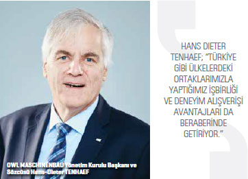 Hans-Dieter Tenhaef: OWL MASCHINENBAU’nun temel amacı Ostwestfalen-Lippe’in küresel rekabette öne çıkan teknoloji bölgesini güçlendirmek. Bu vesileyle bölgede mekanik mühendislik, otomasyon ve üretim teknolojileri alanlarında faaliyet gösteren KOBİ’lerin mevcut ekonomik ve teknolojik performans kapasitelerini, birbirleri ile yaptıkları fikir, deneyim iletişimi ve alışverişini de dikkate alarak artırmak. Söz konusu bu amaç, dünyanın dört bir yanındaki çok sayıdaki tedarikçilerimizi ve katma değer yaratan hatırı sayılır ortaklarımızı da kapsıyor. OWL bölgesinin itici gücü olan tüm sorumlu şirketler, hem ürünün hem de üretim yetkinliğinin ulusal ve uluslararası düzeyde bütün ilgili hedef gruplarına sunulması için kuruluşumuza dahil ediliyor.