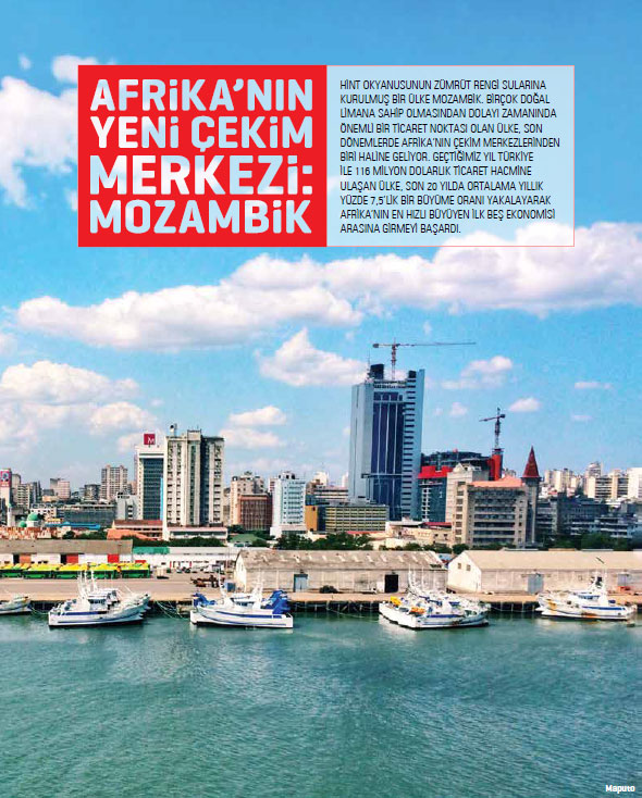 Dünyanın düşük gelirli ülkelerinden olan Mozambik aynı zamanda zengin doğal kaynaklara sahip. 1990 yılında yapılan Anayasa değişikliği ile pazar ekonomisini benimseyen Mozambik, yatırım ortamının iyileştirilmesi ve ekonomik altyapısının yeniden inşası gayreti içerisine girmiş bir ülke konumunda bulunuyor. Son yıllarda hızla büyüme gösteren Mozambik ekonomisi son 20 yılda ortalama yüzde 7,5’lik büyüme hızını yakaladı. Hint Okyanusu’nun zümrüt rengi sularına kurulan Mozambik limanlarıyla da Zambiya, Zimbabve, Botsvana ve hatta Güney Afrika Cumhuriyeti’nin kuzey kesiminin denizle bağlantısını sağlıyor. Bu çerçeveden bakıldığında, ülkede bulunan limanlar, ekonomik bakımdan büyük önem taşıyor.