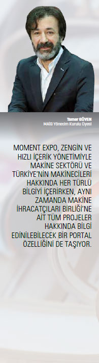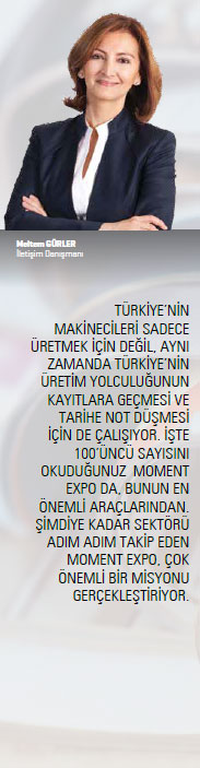 Moment Expo, bütünlüklü bir stratejinin parçasıdır. Biz, göreve geldiğimizde, bırakın makine sektörünün önemini, sektörümüzün varlığından bile birçoklarının haberi yoktu. Dolayısıyla, popüler kültürü kullanarak, “Tıkır Tıkır” kampanyası ve Moment Expo’nun yayın hayatına başlatılmasını sağlayarak sektörümüzün tanıtımını amaçlamıştık. Bunların hepsi, bir stratejinin parçalarıydı. Çok şükür ki bu tanıtımı başarıyla gerçekleştirdik: Türkiye bugün, siyasetçisi, bürokratı ve kamuoyu ile bir ülkenin üretim araçlarını üretmesinin ne kadar önemli olduğunu biliyor. Ama bu bilincin oluşması demek, gereken güce ulaştığımız anlamına gelmiyor. Üretim kültürümüz arttıkça, nitelikli ve kalifiye insan kaynaklarımız arttıkça, vizyoner girişimcilerimiz çoğaldıkça daha da güçleneceğiz.