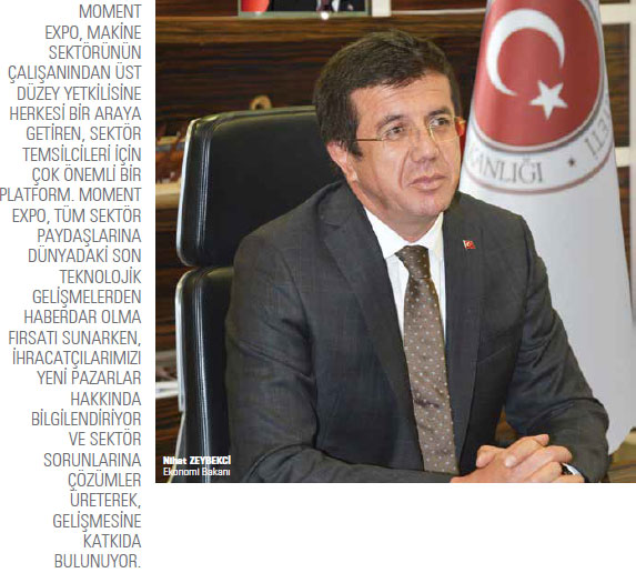 Bu ay 100’üncü sayısı ile okurlarının karşısına çıkacak olan Moment Expo; Türk makine sektörünün tanıtımında üstlendiği misyonu gereğince yerine getirebilen yayınlar arasındadır. 100’üncü sayısına ulaşan Moment Expo’yu tebrik ediyor, başarılı grafiğinin her sayıda daha da artarak nice nice sayılara ulaşmasını diliyorum.