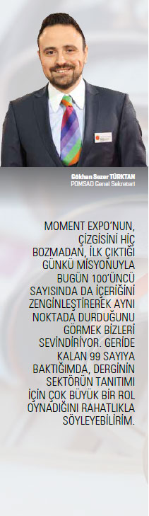Burada elbette sektörel yayıncılığın önemi de ortaya çıkıyor. Ciddi, güvenilir, ulaşılabilir ve ulaştırılan yayınlara ihtiyacımız var. Moment Expo’nun bu konudaki yeri elbette ayrıcalıklı. Ülke içinde ve dışında tanıtım her işin olmazsa olmazıdır artık. Bazen yurt dışı fuarlarda gördüğümüz Türk makine imalatçılarını tanımadığımızı fark ediyoruz. Tanınmadığı için de bu makinelere ihtiyacı olanlar hemen ithalatı düşünebiliyor ve bu durum sektörün gelişimine engel oluyor. Burada dış temsilciliklerimizde bulunan Ticaret Müşavirlerimizin bulundukları ülke kuruluşları ile iyi diyaloglar kurup, uygun ortamlar hazırlamaları tanıtımda önemli bir katkı olacaktır. Moment Expo, para kazanma gayesi gütmeden sektörü tanıtma çabalarıyla her türlü takdirin üstündedir. Bu yayını başarı ile sürdürdükleri için MAİB ve Türkiye’nin Makinecileri’ni kutluyor ve teşekkür ediyoruz. Bununla birlikte, derginin yabancı dil bölümünün daha fazla geliştirilmesi ihracat için daha çok katkı verebilir; hedef pazarlara yönelik dağıtımlar daha etkin sağlanabilir. Son olarak, Moment Expo’nun hazırlığında emeği geçen tüm ekibi kutluyor, daha nice 100 sayılara ulaşmanızı diliyorum. Bu noktada kendi sektörümüz, akışkan gücü başta olmak üzere hepimizin bu yayına ve benzer yayınlara destek vermelerini, katılımcı olmalarını, yanlış ve doğruları dillendirmelerini bekliyorum. Başka türlü büyüyemeyiz!
