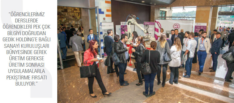 Üniversitemizin kurucusu olan Gedik Eğitim Vakfı, Gedik Holding’in desteğiyle oluşturuldu. Bu nedenle grup şirketleri olan Gedik Kaynak ve Gedik Döküm ile robotik konularında işbirliği çalışmalarımız devam ediyor. İstanbul Teknopark’ta kurulacak Ar-Ge merkezinde, savunma sanayine hizmet veren şirketlerle işbirliği çerçevesinde Ar-Ge çalışmaları yapılacak. Ayrıca, ASELSAN ile işbirliğine yönelik ön protokol imzalandı. Gelecekte birlikte çalışılacak projeler üzerinde görüşmeler ise devam ediyor. Bölümümüz öğretim üyeleri özellikle sanayi ile işbirliği konusunda deneyim sahibi akademisyenlerden seçiliyor. Yurt içi ve dışında sanayi deneyimi bizim için akademisyen seçiminde ağırlıklı tercih kriterinden biridir.