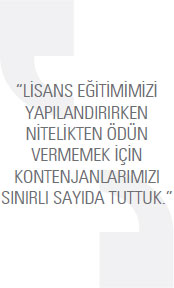 Öğrencilerimizle daha fazla etkileşim içerisinde olmak, onlarla birebir ilgilenebilmek için kontenjan sayımızı önümüzdeki yıllarda da aynı şekilde belirlemeyi düşünüyoruz. Öğrencilerimizin dünyada olup biten gelişmeleri takip etmelerini istiyoruz. En güncel yayınlara ulaşmalarını, yaptıkları çalışmaları ve araştırma sonuçlarını uluslararası katılımlı yarışmalarda, fuarlarda ve sempozyumlarda sergilemelerini arzu ediyoruz. Bunun ilk koşulu da iyi bir dil eğitiminden geçiyor. Üniversite olarak öğrencilerine iyi bir yabancı dil eğitimi vermenin yanından bu dili kullanarak mesleki gelişimlerine katkıda bulunmak için, eğitim dilimiz tamamıyla İngilizce’dir. Eğitimlerimizin akademisyenden öğrenciye yavan bir bilgi aktarımına dönüşmesini istemiyoruz. Bunun için teknolojiyi en etkin biçimde kullanmayı planlıyoruz. Özellikle derslerimizi, görsel ve işitsel materyaller ile desteklenmiş şekilde düzenledik. Bir yandan dersliklerimizi bu duruma imkan verecek şekilde hazırlarken diğer yandan da yükseköğretim konusunda uzman yayınevleri ile işbirliği yaptık. Ayrıca ülkemizdeki pek çok üniversitenin aksine, öğrencilerin teorik bilgiyi özümsemesini sağlayan uygulamaları ve deneyleri son sınıfa ertelemiyoruz.