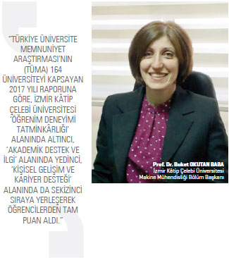 Okullarının, üçüncü kuşak üniversite kavramı uyarınca, “sanayide üniversite” prensibiyle İzmir Atatürk Organize Sanayi Bölgesi’ne bitişik olarak 2010 yılında kurulan bir devlet üniversitesi olduğunu söyleyen İzmir Kâtip Çelebi Üniversitesi Makine Mühendisliği Bölüm Başkanı Prof. Dr. Buket Okutan Baba, bölümlerinin de üniversitenin kuruluşundan iki yıl sonra mühendislik ve mimarlık fakültesi bünyesinde eğitim hayatına başladığını aktarıyor. Eğitim-öğretime başladıkları ilk günden itibaren lisans eğitimini yüzde 100 İngilizce olarak verdiklerini belirten Baba, “Kültürlü, çağdaş, özgüveni yüksek, sosyal yaşamında başarılı ve evrensel değerlere bağlı nesiller yetiştirme gayesinin yanı sıra; analitik düşünebilen, mekanik, termal ve kontrol sistemlerinin optimum dizaynı ve üretimini yapabilen, problemlere çözüm üretebilen ve sorunları yönetebilen, yenilikçi fikir ve ürünler geliştirebilen, girişimci ve mühendislik etiğine sahip makine mühendisleri yetiştirme misyonuyla hareket ediyoruz” diyor.