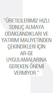 Günümüzde farklılık yaratmak, katma değeri yüksek ürünler üretmek istiyorsanız bunun yolu Ar-Ge’den geçiyor. Ancak teknolojisini veya tasarımını kendi geliştirdiğiniz ürünler sayesinde dünya pazarında etkili olabiliyor, ülkenizin ihracat potansiyeline daha fazla katkıda bulunabiliyorsunuz. Ar-Ge çalışmaları sonucu ortaya çıkan ve ürüne eklediğiniz yenilikler, ürünün fonksiyonelliğini ve performansını artırabiliyor veya enerji tüketimini azaltan bir etki gösterebiliyor. Bu durum da müşterinin veya tüketicinin ilgisini hızlı bir şekilde çekiyor ve bu ilginin üründen memnuniyete dönüşmesi durumunda, pazardaki rekabet ortamından sıyrılmak mümkün hale geliyor. Ar-Ge çalışmaları sonucu ortaya çıkmış ve performans hedeflerini tutturmuş bir ürünle pazarda çok hızlı bir şekilde en önlere geçebiliyorsunuz. Aynı zamanda Ar-Ge çalışmalarının en önemli katkılarından birisi de çalışmalar sonucu ortaya çıkan birçok verinin başka Ar-Ge çalışmalarını başlatabilme potansiyelinin olmasıdır. Ülkemizde Ar-Ge bilinci daha yeni yerleşen bir olgu. Ar-Ge çalışmalarının özelliği ilk başta kendi bütçenizden harcama yapmanız, genellikle orta ve uzun vadede geri dönüşünü alacak olmanızdır. Ülkemizdeki firmalar çok hızlı sonuç almaya odaklı ve çoğu zaman Ar-Ge çalışmalarının başlangıç maliyetine girmek istemediklerinden Ar-Ge yatırımlarına çekimser yaklaşıyor. Özellikle son 10 yılda artarak gelişen devlet Ar-Ge destekleri yatırımcıları daha cesaretlendirdi. Ülkemizde Ar-Ge konusunda bence en önemli eksiklik üniversite-sanayi işbirliğinin sağlanamamasıdır. Özel sektör çoğunlukla zorlandığı veya çözemediği sorunda teknik hizmet almak için üniversitelere başvururken, üniversiteler de çoğu zaman üniversite ortamından çıkıp sanayinin içine dahil olamıyor. Üniversite-sanayi ortak projelerinde son zamanlarda artış olsa da (teknoloji transfer ofisleri de bunda etkili) yeterli düzeye ulaşmadığını düşünüyorum. Sanayinin üniversitelere proje götürerek üniversite ve sanayinin ortak projelerde çalışması, üniversitelerin teknik altyapısıyla sanayinin pratik altyapısının birleşmesinin büyük avantajlar getireceğine inanıyorum. Üniversite-sanayi işbirliğinin en büyük avantajlarından birisi de, yüksek nitelikli doktora ve yüksek lisanslı personelin sanayiye entegrasyonunun kolay olması ve böylece Ar-Ge merkezlerinin ihtiyaç duyduğu yüksek nitelikli personel ihtiyacının daha rahat karşılanabilmesidir. Ar-Ge anlamında atılması gereken en önemli adım üniversitesanayi arasındaki koordinasyonunun tam olarak sağlanmasıdır.