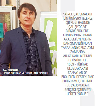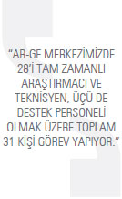 Ar-Ge merkezimiz Bilim, Sanayi ve Teknoloji Bakanlığı tarafından onaylanmış sekiz Ar- Ge projesi yürütüyor. Özellikle TÜBİTAK 1505 - Üniversite-Sanayi İşbirliği Destek Programı kapsamında çalışmalarımız mevcut. Ar-Ge çalışmaları için üniversitelerle iş birliği halinde çalışıyor ve birçok projede, konusunda uzman akademisyenlerin danışmanlığından yararlanıyoruz. Aynı zamanda Ar-Ge kabiliyetimizi geliştirerek 1509 - TÜBİTAK Uluslararası Sanayi Ar-Ge Projeleri Destekleme Programı içerinde de çalışmalar gerçekleştirmeyi hedefliyoruz. Ar-Ge personelimizin gelişimi için üniversite eğitimlerini takip ediyoruz. Bu noktada en büyük yatırımı Ar-Ge merkezi personeline yapıyoruz. Devletimiz, Ar-Ge çalışmalarını maddi olarak önemli ölçüde destekleyerek firmaların bu konudaki yükünü azaltıyor. Özel sektörün de devletin bu desteğini boşa çıkarmayacağına ve üzerine düşen görevleri yerine getireceğine inanıyorum.