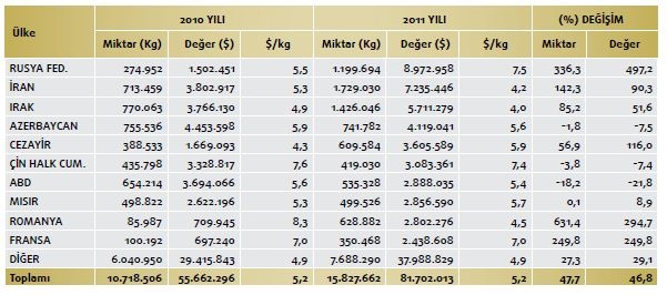 duğu görülüyor. Almanya’ya 2010 yılının Mayıs döneminde 11 milyon 675 bin dolarlık takım tezgâhları ihracatımız söz konusu iken 2011 yılının aynı dönemine gelindiğinde 22 milyon 489 bin dolar ihracat düzeyi yakalandı. Takım tezgâhları ihracatımızın üçüncü en büyük pazarı ise Rusya Fed. oldu. Rusya Fed.’e 2010 yılının Mayıs döneminde 9 milyon 791 bin dolarlık takım tezgâhları ihracatımız söz konusu iken 2011 yılının aynı dönemine gelindiğinde 22 milyon 175 bin dolara yükseldiği görüldü. Takım tezgâhları ihracatımızda dördüncü sırada Irak yer alıyor. Irak’a 2010 yılında 17 milyon 504 bin dolarlık ihracat gerçekleşirken 2011 yılında 16 milyon 410 bin dolar ihracat gerçekleşti. Takım tezgâhları ihracatımızın 2011 yılı Mayıs döneminde en fazla artış gösterdiği ilk beşte yer alan beşinci ülkenin ise Polonya olduğu açıklandı. Polonya’ya 2010 yılında 5 milyon 525 bin dolar ihracat yaparken 2011 yılında 8 milyon 410 bin dolar ihracat gerçekleşti. Takım tezgâhları ihracatımızda değer bakımdan ise ilk üç sırada yüzde 126,5 değer artışı ile Rusya Fed. yer alıyor. Söz konusu ülkeden sonra yüzde 92,6 ile Almanya ve sonrasında yüzde 70,5 oranında yükselişle ABD takip ediyor.