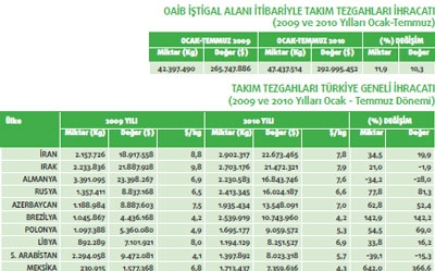 Türkiye takım tezgâhları ihracatı geçtiğimiz yılın Ocak-Temmuz dönemine göre 2010 yılının aynı zaman dilimi ile kıyaslandığında yüzde 10,3 oranında yükseliş göstermiş durumda. 2009 yılının ilk 7 ayında 265 milyon 747 bin dolar olan takım tezgâhları ihracatımız 2010 yılının ilk 7 ayında ise 292 milyon 995 bin dolar olmuş.Takım tezgâhları ihracatımız ülkeler bazında incelendiğinde ise İran’ın en fazla ihracat gerçekleştirdiğimiz ülke olduğu görülüyor.Söz konusu ülkeye 2010 yılının Ocak-Temmuz ayları arasında 22 milyon 673 bin dolarlık pompa ve kompresör ihracatı yapılmış. İran’ın ardından en fazla takım tezgâhları ihracatımız olan ikinci ülke ise Irak. Bu ülkeye geçtiğimiz yılın ilk yedi aylık döneminde 21 milyon 887 bin dolarlık takım tezgâhları ihracatı söz konusu iken 2010 yılının aynı dönemine gelindiğinde yüzde 1,9 oranında düşüş ile 21 milyon 472 bin dolarlık ihracat yapılmış.Almanya ise takım tezgâhları ihracatımızın en fazla olduğu üçüncü pazar konumunda. Almanya’ya geçtiğimiz yılın ilk 7 aylık döneminde 23 milyon 398 bin dolarlık takım tezgâhları ihracatı gerçekleştirilmişken 2010 yılının aynı dönemine gelindiğinde ise yüzde 28 oranında değer düşüşü ile 16 milyon 843 bin dolarlık ihracat kaydedilmiş. Takım tezgâhları ihracatında en fazla değer artışı ise yüzde 366,6 ile Meksika ile olan ihracatta yaşanmıştır. Söz konusu ülkeye 2009 yılının Ocak-Temmuz döneminde 1 milyon 577 bin dolarlık ihracat gerçekleştirilirken, 2010 yılının aynı döneminde bu rakam 7 milyar 359 milyon dolara çıkmıştır. Takım tezgâhları ihracatında diğer önemli değer artışı ise Brezilya ile yaşanmıştır.Söz konusu ülkeye 2009 yılının Ocak-Temmuz döneminde 4 milyon 436 bin dolarlık ihracat gerçekleştirilirken, 2010 yılının aynı döneminde bu rakam yüzde 142,2 artış göstererek 10 milyar 743 milyon dolara çıkmıştır.