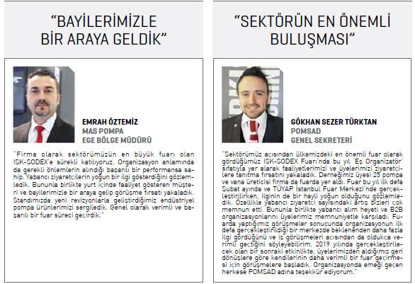 ISK-SODEX 2018, 7-10 Şubat tarihlerinde TÜYAP İstanbul Fuar Merkezi’nde gerçekleştirildi. 44 ülkeden 1108 firmanın katıldığı organizasyonda pompa ve vana sektörü yeni ürünleriyle yer aldı.