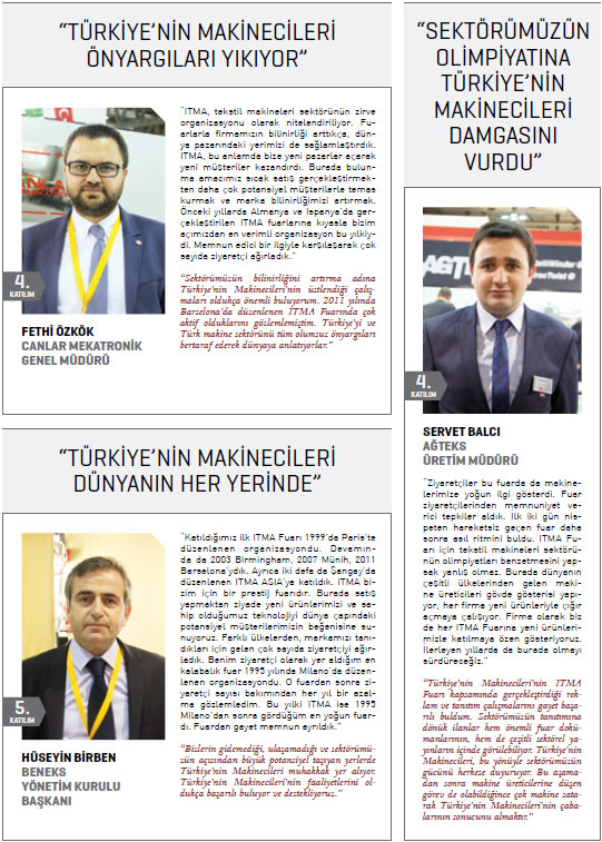 Türkiye, Uluslararası Tekstil ve Konfeksiyon Makineleri Fuarı ITMA’ya bu yıl 135 firmayla katılarak çıkartma yaptı. Sektöre yönelik tanıtım çalışmaları kapsamında yeni logo ve ismin kullanıldığı ilanlar, fuar alanı ve şehrin farklı noktalarını süsledi. Fuarda gerçekleştirilen basın toplantısında açıklamalarda bunulan MAİB ve MTG Yönetim Kurulu Başkanı Adnan Dalgakıran, sektörün gelecek hedeflerini ve yeni logosunun ardındaki felsefeyi anlattı. MTG olarak, sektörün gelişimine yönelik stratejilere katkı sağlamak üzere katıldıkları uluslararası organizasyonlarda, makineciliğin tüm dünyada ne kadar hızlı bir gelişme içinde olduğunu gözlemlediklerini belirten Adnan Dalgakıran, “Makine sektörü katma değerini artırırken, katma değerli üretim konusunda tüm imalat sanayisini peşinden sürüklüyor. Dünya mal ihracatı tablosunda petrol ve doğalgazdan sonra 2.910 milyar dolar ile ikinci sırada bulunan ve Türkiye imalat sanayisinde 1 birim üretimle 0,26 birim katma değer yaratma gücüyle üçüncü sırada yer alan makine sektörünü, Türkiye ekonomisi için de vasatlıktan çıkışın adresi olarak görüyoruz. Sektörün, ekonominin geneline yayılan çarpan etkisiyle kendisine atfedilen bu önemi fazlasıyla hak ettiğini hep birlikte göreceğiz. Gelecek döneme ilişkin hedeflerimizi, kararlılığımızı ve çalışma felsefemizi somutlaştırmak için de sembolik bir adım atmak istedik. Bu nedenle Birliğimizin logosunu felsefemizi yansıtır bir hale getirdik. Yeni logomuz; cesareti, açık sözlülüğü, adanmışlığı ve saygıyı temel değerleri olarak benimsemiş olan Türkiye’nin Makinecileri’ni bu ülkeden yükselen ve dünyaya ışık veren bir yıldız olarak simgelemektedir” dedi.