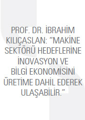 Çalıştayın açılışında konuşan Bilim, Sanayi ve Teknoloji Bakanlığı Sanayi Genel Müdürü Prof. Dr. İbrahim Kılıçaslan makine sektörünün önemine vurgu yaparak, “Bakanlığımızın sorumluluk alanına giren 34 sektör içinde makine özel bir yere sahiptir” dedi. Türkiye’nin 2023 hedefleri doğrultusunda makine sektörüne önemli görevler düştüğünü belirten Kılıçaslan, mevcut stratejilerle sektörün beklentilere cevap veremeyeceğini söyledi. Sektörün 100 milyar dolarlık ihracat rakamına ürünlerdeki katma değeri artırarak ulaşabileceğini ifade eden İbrahim Kılıçaslan, inovasyon ve bilgi ekonomisini üretime dahil ederek arzu edilen sıçramanın yapılabileceğini aktardı. Kılıçaslan sözlerini şöyle noktaladı: “Makine Sektörü Strateji Belgesini hazırlarken, makine sektöründe faaliyet gösteren üreticilerimizin devletimizden beklentilerini öğrenmek istiyoruz. Kişisel olarak Türk makine sektörünün her türlü makineyi üretebilecek kapasitesi olduğuna inanıyorum. Fakat sektörümüzün dağınık yapısından kaynaklanan sorunlarına çözüm üretmeliyiz. Bu konuda neler yapılabileceğinin, markalaşma, kümelenme ve Ar-Ge konularında hangi adımlar atılması gerektiğinin toplantıda tartışılmasını, alınan kararların da strateji belgesinde yer bulmasını arzu ediyoruz. Hedeflerimize ulaşmak için farklı stratejiler geliştirmeli, sonuç odaklı bir çalışmaya imza atmalıyız. Kamu ve özel sektörü bir araya getiren bu çalıştayın önemli bir sinerji yaratacağını umuyorum.”