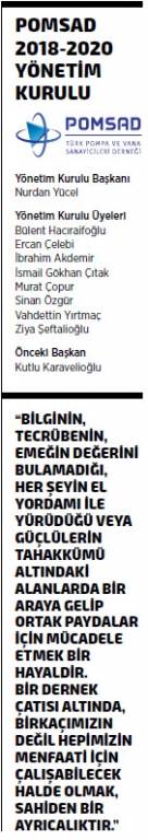 TÜRK POMPA VE VANA SANAYİCİLERİ DERNEĞİ’NİN (POMSAD) 11’İNCİ OLAĞAN GENEL KURULU 26 EYLÜL’DE İSTANBUL’DA GERÇEKLEŞTİRİLDİ. YÖNETİM KURULU BAŞKANLIĞINA, BAŞKAN YARDIMCISI NURDAN YÜCEL GETİRİLDİ.