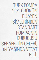 Kaliteli üretime ve dürüst ticarete verdiği önemle iş çevresinin saygısını kazanan Şerafettin Çelebi, hayatını Türk pompa sektörünün dünyaya açılması konusunda emek vererek geçirdi. Çevresinin “Hacı Baba” olarak hitap ettiği Şerafettin Çelebi hayırseverliğiyle de toplumun gönlünde taht kurdu. Şerafettin Çelebi’nin “Kaliteli mal yapacaksınız, arkasında duracaksınız, pazarlamayı iyi yapacaksınız!” sözlerini hatırlatan oğlu Erol Çelebi, “Babam bize dürüst olmayı öğretti. Her zaman dürüst olmamızı, işimizin ve ürünlerimizin arkasında olmamızı, sözlerimizi tutmamızı, kaliteden ödün vermememizi ve müşterileri memnun etmemizi tavsiye etti. Bu prensiplerle çalışmalarımızı sürdüreceğiz” dedi.
