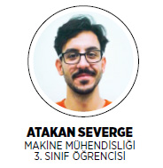 “Yaratıcı düşünme ve çözüm üretebilme yeteneklerimi insanlığın yararına kullanabileceğime inandığım için makine mühendisliği bölümünü, eğitim dili İngilizce olduğu için de İzmir Ekonomi Üniversitesini tercih ettim. Kırk kişilik öğrenci kontenjanıyla İzmir Ekonomi Üniversitesinin benim için en iyi tercih olduğuna inanıyorum. Her zaman daha fazla bilgiye ve etkinliğe aç olan bir öğrenci olarak beklentilerimin yüzde 100 karşılandığını söylersem dürüst davranmış olmam. Ancak, bu okulu seçmemdeki nedenlerin ne kadar önemli olduğunu artık daha iyi anlıyor ve genç yaşta verdiğim bu doğru karar için kendimi şanslı hissediyorum. Konstrüksiyon ve imalat alanında uzmanlaşarak tasarım konusunda kendimi geliştirmek istiyorum.