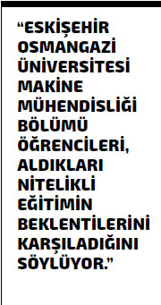 ESKİŞEHİR OSMANGAZİ ÜNİVERSİTESİ MAKİNE MÜHENDİSLİĞİ BÖLÜMÜ ÖĞRENCİLERİ, DONANIMLI BİR EĞİTİM KADROSUNA SAHİP KÖKLÜ BİR KURUMDA EĞİTİM GÖRMENİN, KENDİLERİNE ÖNEMLİ AVANTAJLAR SAĞLADIĞINI BELİRTİYOR.