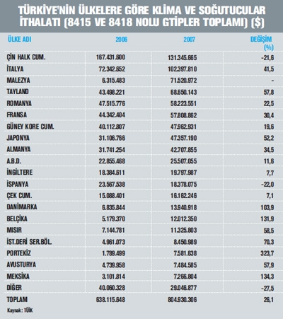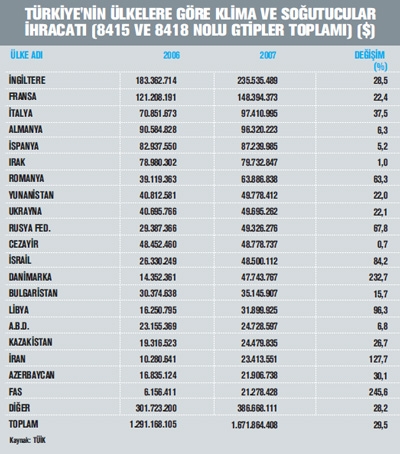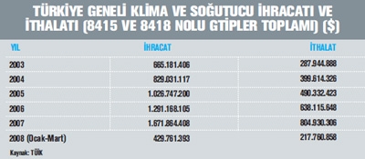 “ 2003 yılında 665 milyon dolar seviyesinde olan ısıtma, soğutma ve iklimlendirme cihazlarının ihracatının 2007 yılında 1.67 milyar dolara ulaşarak neredeyse üç kat arttığı dikkatleri çekiyor.”