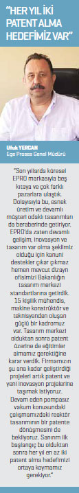 EPS’ye ait üretim makinesi ve ekipmanlarını üreten Ege Proses de Ar-Ge Reform Paketi açıklanır açıklanmaz mevcut dizayn ofisinin bilgi birikimi ve mühendislik deneyimleriyle tasarım merkezi başvurusunda bulunmuş ve Türkiye’nin 45’inci tasarım merkezi olarak akredite olmuş bir firma. Ege Proses