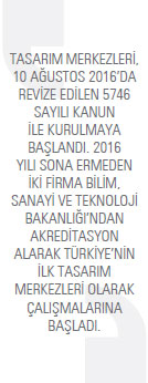 Güncel ihtiyaçlar doğrultusunda revize edilen 5746 sayılı Kanun’un ilk yürürlüğe girdiği 2008’den itibaren aslında Türkiye’de çok sayıda akredite Ar-Ge merkezi kurulmuş ve bu merkezlerde geliştirilen projeler, katma değerli üretime de dönüşerek ülke ekonomisine hedeflenen katkıları sağlamayı başarmıştı. Ancak KOBİ ölçeğinde Ar-Ge merkezi kurulmasının zor ve maliyetli olması nedeniyle ortaya atılan “Tasarım merkezleri”nin kurulması fikri ise revize edilen 5746 sayılı Kanun ile gerçekleşti. Kanun’un 10 Ağustos 2016’da yürürlüğe girmesinden kısa süre sonra ilk tasarım merkezi başvuruları alınmaya başlanırken, 2016 yılı sona ermeden iki firma Bilim, Sanayi ve Teknoloji Bakanlığı’ndan akreditasyon alarak Türkiye’nin ilk tasarım merkezleri olarak çalışmalarına başladı. Haziran 2017 itibarıyla Türkiye’deki tasarım merkezlerinin sayısı 53’e yükseldi. Sektörel değerlendirmede tekstil sektöründeki tasarım merkezlerinin sayısı 17’ye ulaşırken, makine ve teçhizat imalatı ise 11 tasarım merkezi ile ikinci sırada yer alıyor. Otomotiv, otomotiv yan sanayisi, imalat sanayisi, dayanıklı tüketim malları ve savunma sanayisindeki tasarım merkezlerinin makine ve teçhizat sektörleriyle yakın ilişkisi