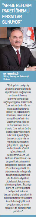 başladı. Türkiye’de Ar-Ge faaliyetlerinin desteklenmesi, tasarımın gelişimine yönelik politika ve stratejilerin oluşturulması amacıyla atılan ilk adım 12 Mart 2008 tarih ve 26814 sayılı Resmi Gazete’de yayımlanan 5746 sayılı Araştırma ve Geliştirme Faaliyetlerinin Desteklenmesi Hakkında Kanun ile oldu. Özel sektörde tasarım yoluyla ülke ekonomisinin uluslararası düzeyde rekabet edebilir bir yapıya kavuşturulması için ürün veya ürünlerin işlevselliğini artırma, geliştirme, iyileştirme ve farklılaştırmaya yönelik yenilikçi faaliyetlerin hız kazanması, tasarım personeli ve nitelikli iş gücü istihdamının yukarıya çekilmesini desteklemek ve teşvik etmek amacıyla hazırlanan bu Kanun’un uygulanmasına ilişkin yönetmelik ise ilk olarak 31 Temmuz 2008 tarih ve 26953 sayılı Resmi Gazete’de yayımlandı. Süreç içerisinde oluşan ihtiyaçlara göre güncellenen son mevzuat da 26 Şubat 2016 tarih ve 29636 sayılı Resmi Gazete’de yayımlanan, Ar-Ge Reform Paketi olarak da