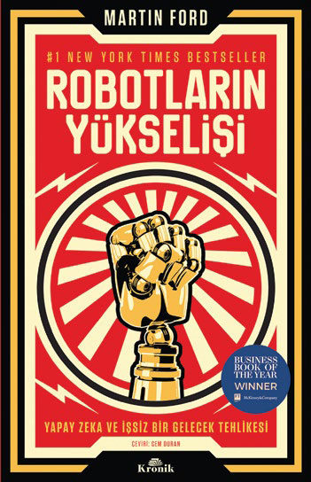 MARTIN FORD, KRONİK KİTAP’TAN ÇIKAN “ROBOTLARIN YÜKSELİŞİ- YAPAY ZEKA VE İŞSİZ BİR GELECEK TEHLİKESİ” BAŞLIKLI KİTABINDA, BİLGİ TEKNOLOJİLERİ VE SANAYİDE OTOMASYONUN GEÇMİŞTEN GÜNÜMÜZE VE GELECEĞE PİYASALARLA İŞYERLERİ ÜZERİNDEKİ ETKİSİNİN NE OLDUĞUNU VE OLACAĞINI ÖRNEKLER VE İSTATİSTİKLERLE ANLATIYOR. FORD’A GÖRE TEKNOLOJİNİN İLERLEMESİ, GELECEKTE ÖNCELİKLE İŞSİZLİK VE PLÜTOKRATİK DÜZENİN YERLEŞMESİ TEHDİTLERİNİ BERABERİNDE GETİREBİLİR.