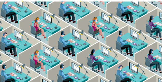 Bu fikirden yola çıkarak, açık plan kollektif ofis çizgisi içerisinde ara bölmeli strüktürler ve modüllerle 1980’lere kadar farklı formlarda evirilen ofis mimarisi, gelişimin terse dönmesiyle, yarı açık kübik istasyonların devasa alanlara yayıldığı “cubicle farm” sistemiyle bir kez daha “tarla ofislerde” robotik ve bunalımlı bir denkleme girdi.