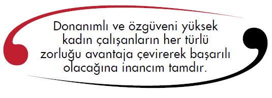 İş hayatında hiçbir zaman kadın olmayı bir zorluk olarak görmedim. Ticarette kadınlara duyulan güven ve inancın, erkeklere oranla daha fazla olduğuna inanıyorum. Ayrıca kadınların, iş takibi ve verilen sözü yerine getirme konularını fazlasıyla önemsediklerini düşünüyorum. Birçok işi aynı anda düşünüp harekete geçebilme becerileri kadınları iş hayatında bence daha avantajlı konuma getiriyor. Her türlü zorluğu avantaja çevirmek bizim elimizde. Kendini geliştirmeyi başarmış çalışan tüm kadınların her işin üstesinden geleceğine eminim. Bu çerçevede duygusal zekanın satış pazarlama ve yönetim üzerindeki pozitif etkisini de unutmamak gerek.