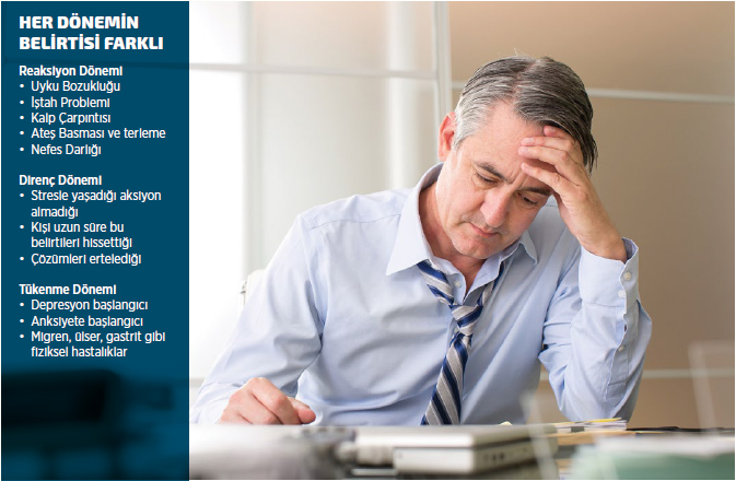 Stresin üç evresi olduğunu söyleyen Nacar Baş, alarm reaksiyonu evresinde belirtilerin farkına varılabileceğini, direnç döneminde içerisinde bulunulan ruhsal durumun inkâr edilebileceğini ve tükenme döneminde ise stresin dolaylı yoldan da olsa migren, ülser gibi fiziksel hastalıklara dönüşebileceğini söylüyor. Psikolog Nacar Baş, onkolojik hastalıklar başta olmak üzere kardiyovasküler ve gastroenterolojik hastalıklar, migren atakları, kas ağrıları, uyku ve yeme bozukluklarında stresin etkilerinden bahsedilebileceğini vurgularken, “Son günlerde psikologların danışmanlığına ihtiyaç duyan danışanların ortak özelliği, hemen hemen hepsinin stresi uzun müddet hissetmelerine rağmen hayatlarında değişiklik yapma gereği duymamalarıdır. Zamanla sırtlandıkları yükler fizyolojik veya psikolojik rahatsızlıklara dönüşmekte, kişilerin hayatın yükünü kaldıramadıklarında destek alma ihtiyacı zorunluluk haline gelmektedir” diyor.