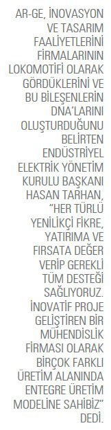 Hasan Tarhan tarafından 1988 yılında Konya’da kurulan Endüstriyel Elektrik 257 kişiden oluşan personeliyle teknoloji, otomasyon, enerji üretimi ve tasarrufu alanında çözümler sunuyor. 11 bin metrekare kapalı alana sahip fabrikasında faaliyetlerini sürdüren firma, bugün itibarıyla üretiminin yüzde 65’ini dünyanın 61 ülkesine ihraç ediyor.