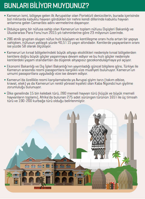Kamerun, 30 milyar dolarlık GSYİH ile Afrika’nın yedinci, Orta Afrika’nın ise en büyük ekonomilerinden biri olarak gösteriliyor. Coğrafi konumu itibarıyla Orta Afrika’nın giriş kapısı ve 1994’te kurulan...