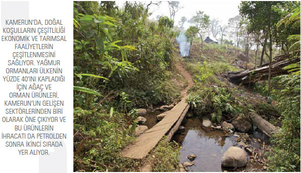 ım altyapısının kötü durumda olması; finansman, girdi ve yeni teknolojilere erişimdeki yetersizlikler sektörün gelişmesinin önündeki en önemli engeller olarak dikkat çekiyor. Diğer taraftan, ormancılık faaliyetleri de Kamerun’un önemli gelir kaynaklarından birini oluşturmaya devam ediyor. Kereste sanayisi daha çok, ülkenin doğusundaki Kongo Havzası ormanlarının etrafında yoğunlaşmışken, ağaç ve ağaç ürünlerinin ihracatı da petrolden sonra ikinci sırada geliyor.