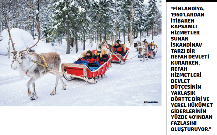 Finlandiya’da eğitime büyük bir önem verilirken, üniversiteyi de içeren eğitimin tüm aşamaları öğrenciler için tamamen ücretsiz sağlanıyor. Finlandiya, 1960’lardan itibaren kapsamlı hizmetler sunan İskandinav tarzı bir refah devleti kurarken, refah hizmetleri devlet bütçesinin yaklaşık dörtte biri ve yerel hükümet giderlerinin yüzde 40’ından fazlasını oluşturuyor. En büyük gider maddesi kapsamlı aile destek sistemiyken, yeni doğan çocukların aileleri önceki gelirlerine bağlı olarak belirlenen bir ödenek alarak bir yıllık izin alma hakkına sahip.