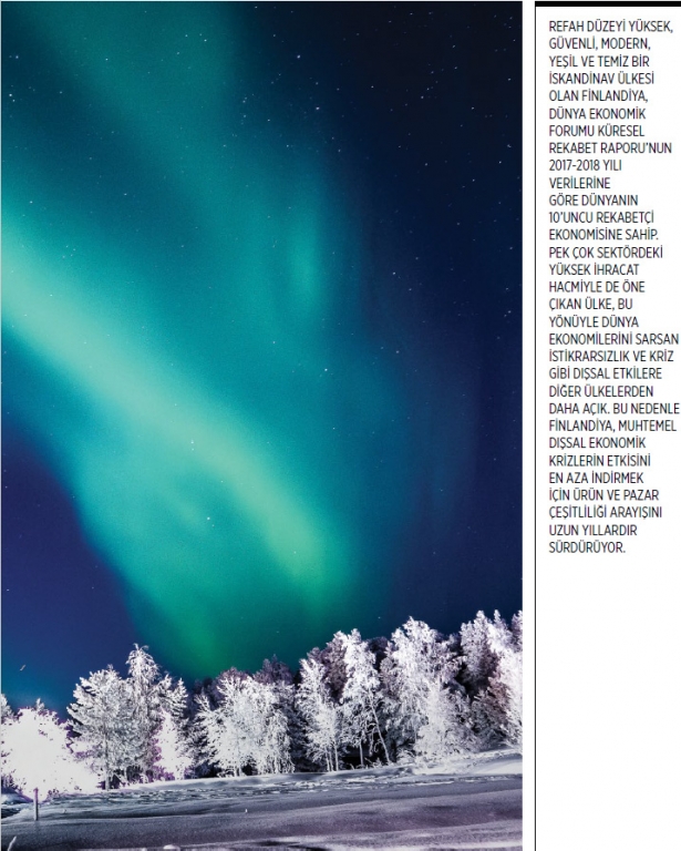 Son olarak, Finlandiya’nın 2017 Dünya İnovasyon Endeksi’nde sekizinci ve Dünya Ekonomik Forumu tarafından açıklanan 2017- 2018 Dünya Rekabetçilik Endeksi’nde 10’uncu sırada olduğunu da söylemeliyiz.