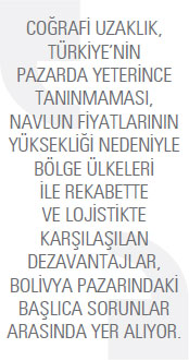 “Firmamız 2000 yılında kuruldu. 2011 yılından bu yana Bolivya’ya tekstil makineleri parçaları ihraç ediyoruz. Bolivya ile ticarette genel olarak dil, gümrük ve yerel pazar koşulları noktasında bazı problemler yaşanıyor. Fakat dil ve gümrük konusunda yaşanan sorunlar deneyim ve doğru yaklaşımlarla aşılabiliyor. Alya Tekstil olarak biz dil konusunu bu alanda bilgisi olan kişilerin istihdamı ile gümrük konusunu da gerekli prosedürleri tam yerine getirip, aşamaları yakın takip ederek yönetiyoruz. Yerel pazarın nabzının tutulması ise oldukça önemli ve zor bir süreç. Bolivya ile ülkemiz arasındaki uzaklık; müşterilerinin ziyaret edilmesi, yerel pazardaki gelişmelerin izlenmesi ve güvenilir satıcı bulunabilmesi konularında zorluklar yaşanmasına neden oluyor.