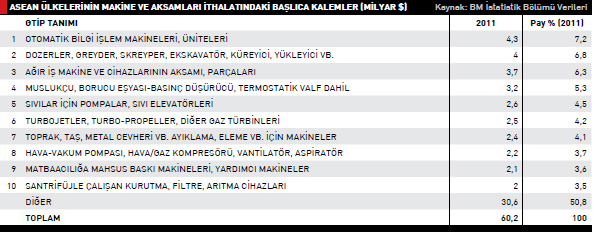 Böylelikle söz konusu ülkelerin genel ithalatı 2011 yılı toplamı 506 milyar 322 milyon dolar değerine yükseldi. “Mineral Yakıtlar, Mineral Yağlar ve Müstahsalları, Mumlar” mal grubu bu pazardan 78 milyar 128 milyon dolar değerinde pay aldı.