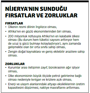Ayrıca, sadece petrol ve doğal gaz değil yer altı madenciliğinde de zengin kaynaklara sahip olan ülkedeki yetersiz madencilik faaliyetleri ve düşük üretim nedeniyle, maden sektörünün ekonomiye katkısı da yüzde 1 seviyelerini aşamıyor. Oysa bu oran, Nijerya’nın Afrika’daki en büyük ekonomik rakibi Güney Afrika’da yüzde 18 civarında ilerliyor.