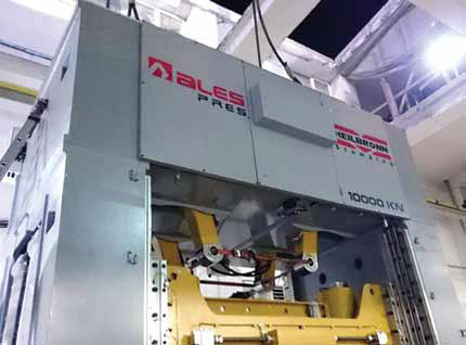 çalışmaların ortadan kalkmasını ve zamandan tasarruf edilmesini sağlamıştır. 1300 milimetrelik yan pencere açıklığı ile geniş sacların yandan beslenebilmesi ve transfer sistemine uygun olması hedeflenmiştir. Çavuş dişli uygulaması ile daha mukavim ve sessiz bir pres dişli yapısı oluşturulmuştur. Ales Pres olarak yüksek tonajlı pres kategorisinde sorunsuz bir şekilde devreye alıp çalıştırdığımız 1000 tonluk pres makinemiz dışında, transfer pres sistemleri imalatımız devam ediyor. Otomatik strok ayar mekanizmaları, çift biyel kollu H tipi eksantrik presler, link drive mekanizmalı presler, özel hat çözümleri ile birlikte olan presler ve servo presler konusundaki çalışmalarımız da sürüyor.”