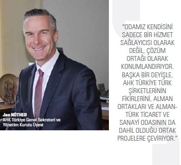 Sunduğumuz hizmet yelpazesi, iş ortaklarının belirlenmesinden Almanya’da yeni iştiraklerin oluşturulmasına veya alternatif yasal oluşumlara kadar uzanıyor. Alman-Türk Ticaret ve Sanayi Odası, Ekonomi ve Enerji Bakanlığı, Almanya Ticaret ve Yatırım, Alman Odası iş ağından özel sektörün bireysel ortaklarına ulaşan çeşitli Alman kuruluşlarıyla işbirliği yapıyor. Daha önce de söylediğim gibi Odamız kendisini sadece bir hizmet sağlayıcısı olarak değil, çözüm ortağı olarak konumlandırıyor. Başka bir deyişle, AHK Türkiye Türk şirketlerinin fikirlerini, Alman ortakları ve Alman-Türk Ticaret ve Sanayi Odası’nın da dahil olduğu ortak projelere çeviriyor.