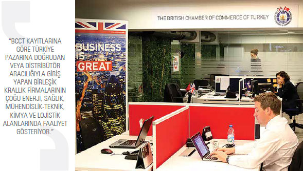 BCCT kayıtlarına göre; Türkiye pazarına doğrudan veya distribütör aracılığıyla giriş yapan Birleşik Krallık firmalarının çoğu enerji, sağlık, mühendislik-teknik, kimya ve lojistik alanlarında faaliyet gösteriyor. BCCT’nin desteğiyle bu firmalar distribütör bulmak, müşteri edinmek ve fabrika kurmak yoluyla son üç yılda Türkiye’de varlıklarını artırdı. BCCT’den yoğun hizmet desteği talep eden sektörlerin başında ise mühendislik, enerji, mekanik, metal (demir- çelik), eğitim, sağlık, inşaat, kozmetik ve yiyecek-içecek sektörleri geliyor.
