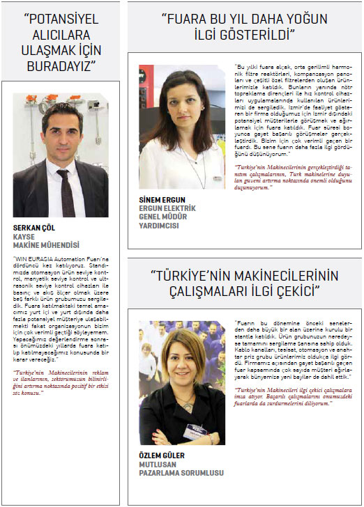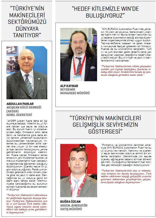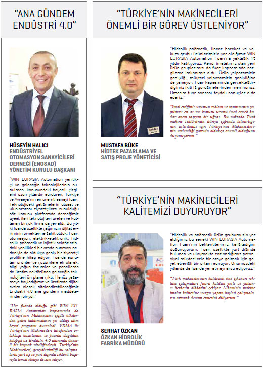 Otomasyon alanında her türlü yeniliğin sergilendiği adreslerden biri olan WIN EURASIA Automation, 17-20 Mart tarihleri arasında 23’üncü kez düzenlendi. Türkiye’nin Makinecileri de etkinliğe katılarak yerli makinecilere verdiği desteği yurt içinde düzenlenen fuarlarda da göstermeyi sürdürdü.