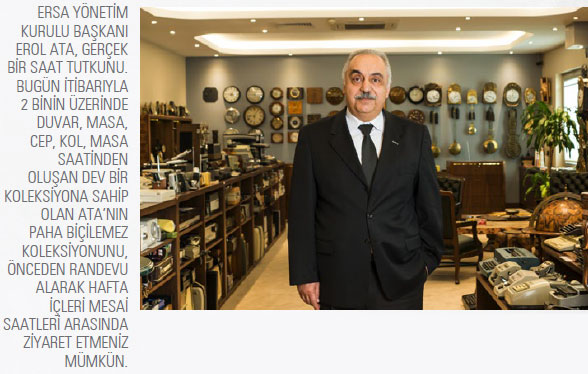 Bir sanayici olan Erol Ata, çocukluğundan beri dakikliğe özel bir önem gösteriyor. Zamanı ve anıları biriktirmeyi ise ayrı bir keyif olarak gören Erol Ata için saat koleksiyonculuğu, kendi söyleyişiyle...