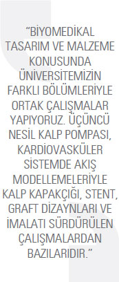 Önemli sanayi bölgelerine yakınlığımız nedeniyle çok şanslı bir bölüm olduğumuzu düşünüyorum. Öğrencilerimiz enerjiden konstrüksiyona, biomedikalden mekatroniğe kadar farklı sektörlerde staj imkanı buluyor. Ayrıca teknik geziler sayesinde yakın çevremizdeki önemli sanayi kuruluşlarını tanıma fırsatı elde ediyor ve yetkilileriyle direkt temas kurabiliyorlar. Öğrencilerimizin staj yerlerine yönlendirilmeleri noktasında da hocalarımız özveriyle çalışmalarını sürdürüyor. Bölümünüz bünyesinde gerçekleştirdiğiniz veya gerçekleştirmeyi planladığınız sanayi projeleriyle ilgili bilgi verir misiniz? Bölümümüzde özellikle biyomedikal tasarım ve malzeme konusunda üniversitemizin Tıp, Elektrik-Elektronik Mühendisliği, Endüstri Mühendisliği, Genetik ve Biyomühendislik gibi fakülte ve bölümleriyle yapılan çalışmalarımız bulunuyor. Üçüncü nesil kalp pompası dizaynı ve imalatı, kardiovasküler sistemde akış modellemeleri ile kalp kapakçığı, stent ve graft dizaynları ve imalatı, 3-D yazıcı tasarımı ve imalatı gibi projeler ortak sürdürülüyor. Akademik kadromuzu genişletirken hedeflediğimiz alanlarda projeler üstelenecek öğretim elemanlarıyla çalışmaya özen gösteriyoruz.